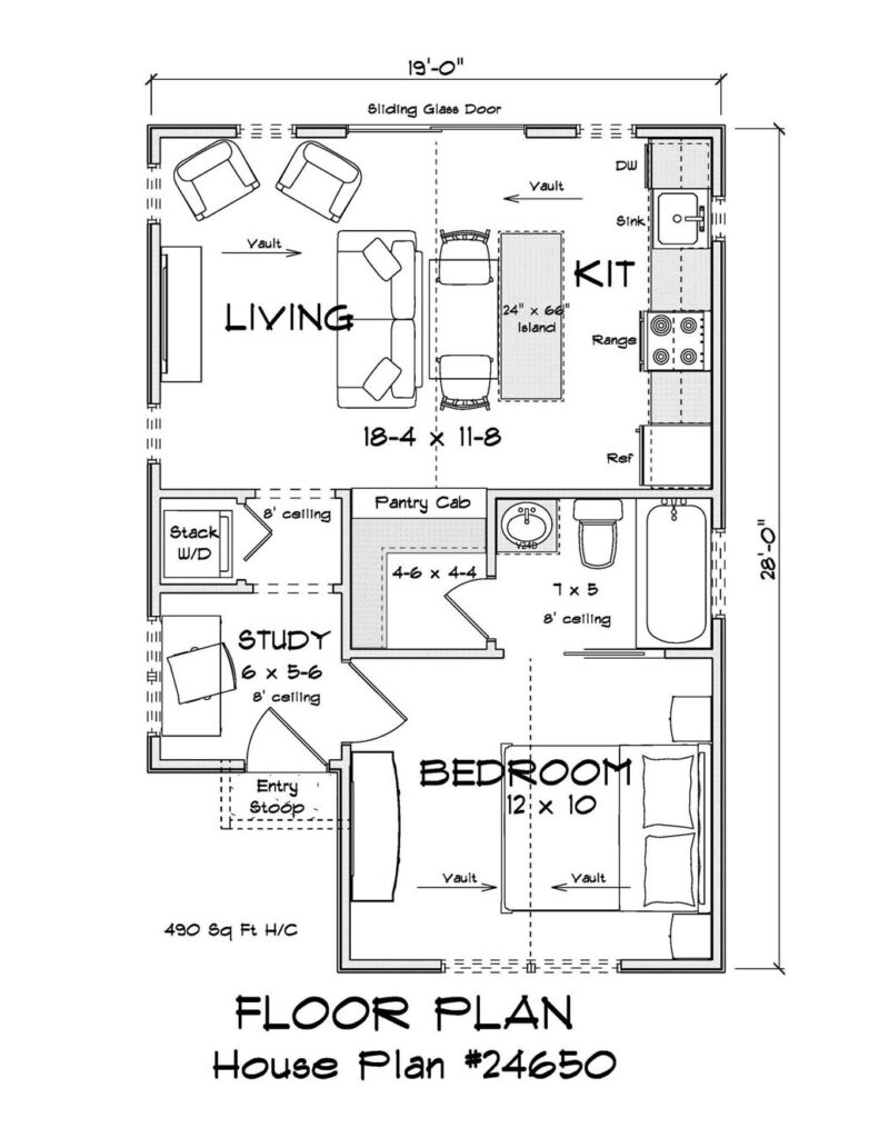 The Stonebrook Cove #24618 proves that even a tiny footprint can deliver a surprisingly livable layout. At just 798 square feet, this one-story design includes 2 bedrooms and 2 full bathrooms, which is a rare combination in a home this size. A large front porch welcomes visitors into an open great room that combines the living area, dining space, and kitchen into one bright, social core. Down the hall, a stacked washer and dryer nook is neatly placed near extra storage, keeping the plan efficient without sacrificing convenience. Both bedrooms function almost like private mini-suites, each with its own full bathroom and walk-in closet, making this plan especially useful for downsizers, vacation rentals, ADUs, or shared living situations.