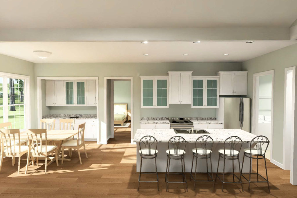 To help developers and new home buyers make confident choices, we have added many interior visuals for Plan #24626, showcasing furniture layouts and real-world room scale, another step in our expanded Affordable by Design plan offerings for today’s attainable home builds.